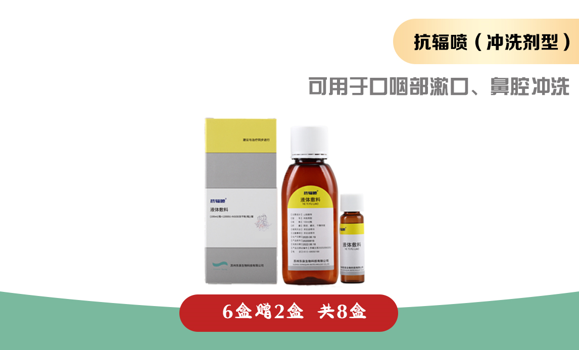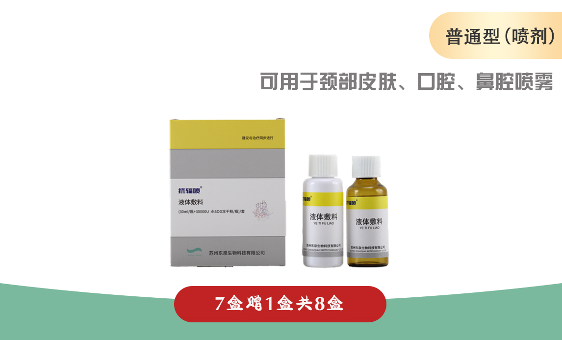 頭頸部放療,放療同步防護:一、抗輻噴(液體敷料)普通型噴劑:訂7盒贈1盒,共8盒:3486元二、抗輻噴(液體敷料)沖洗劑型:訂6盒贈2盒,共8盒:2388元