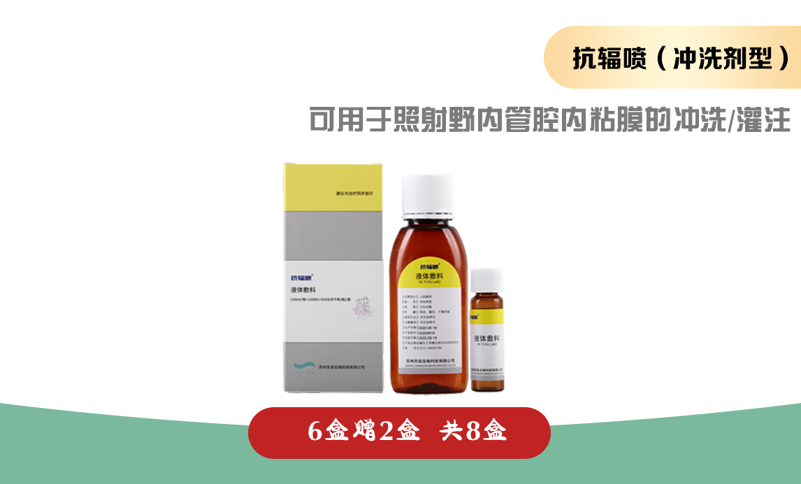 放射治療期間,照射野內(nèi)管腔內(nèi)粘膜防護(hù)、修復(fù),可使用抗輻噴(沖洗劑型):